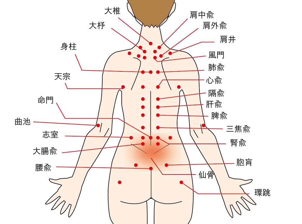「経穴(ツボ)」は決まった位置があるわけではなく、人によっても違いますし、同じ人でも体調により変わってきます。