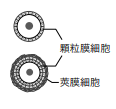 卵胞は外側の莢膜細胞と内側の顆粒細胞に囲まれた形となっています。